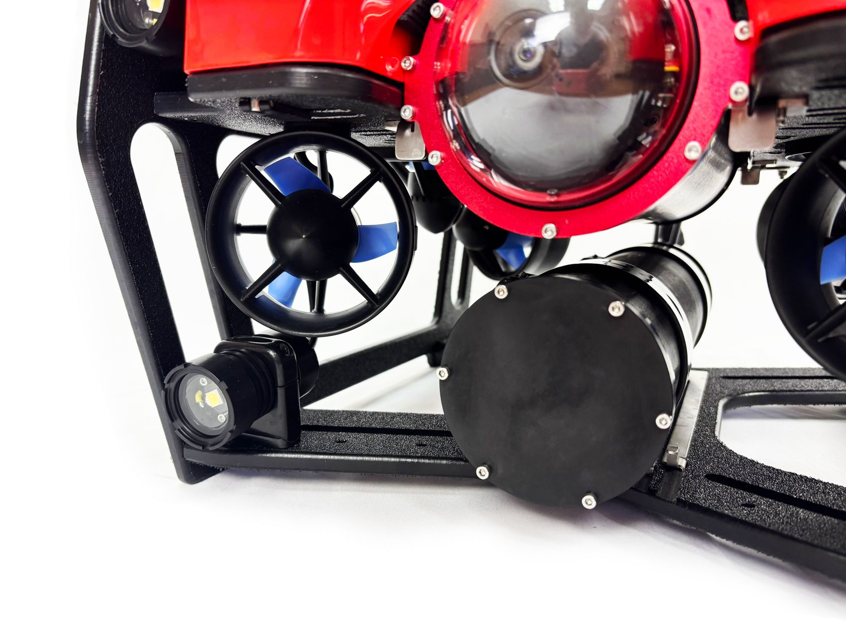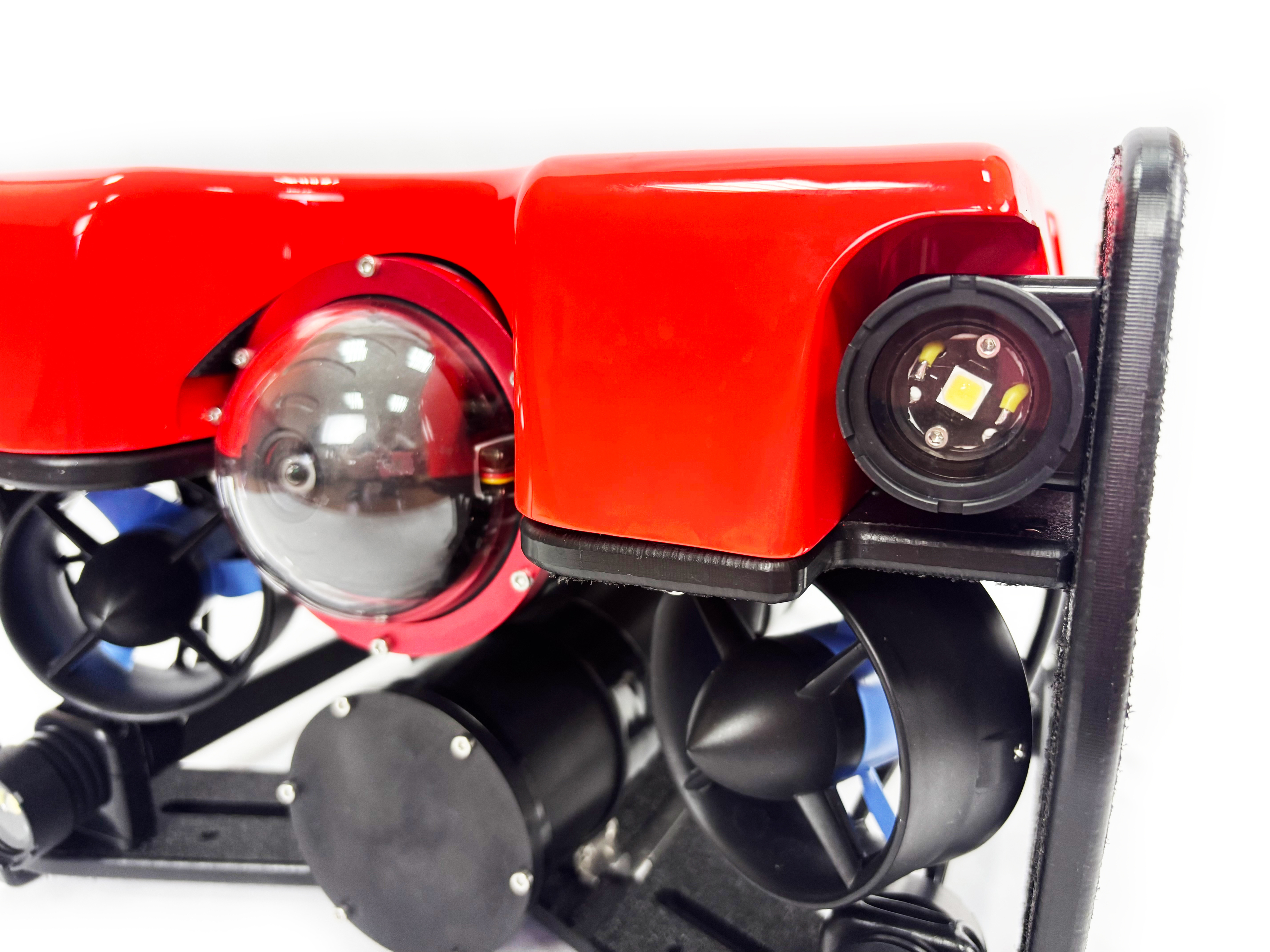 Видеокамера ТПА имеет разрешение Full HD, угол обзора 105° и располагается на поворотной платформе с углом отклонения по вертикали: ±80°. Дополнительно на подводный аппарат может быть установлена 4K видеокамера с датчиком глубины и температуры воды.