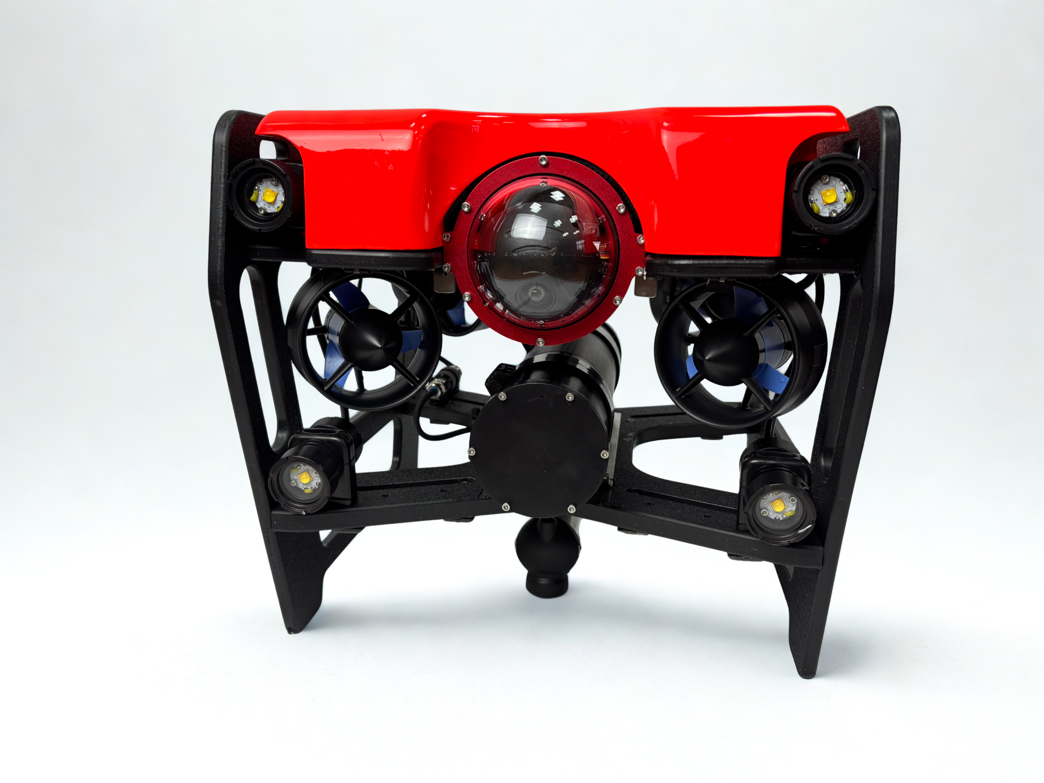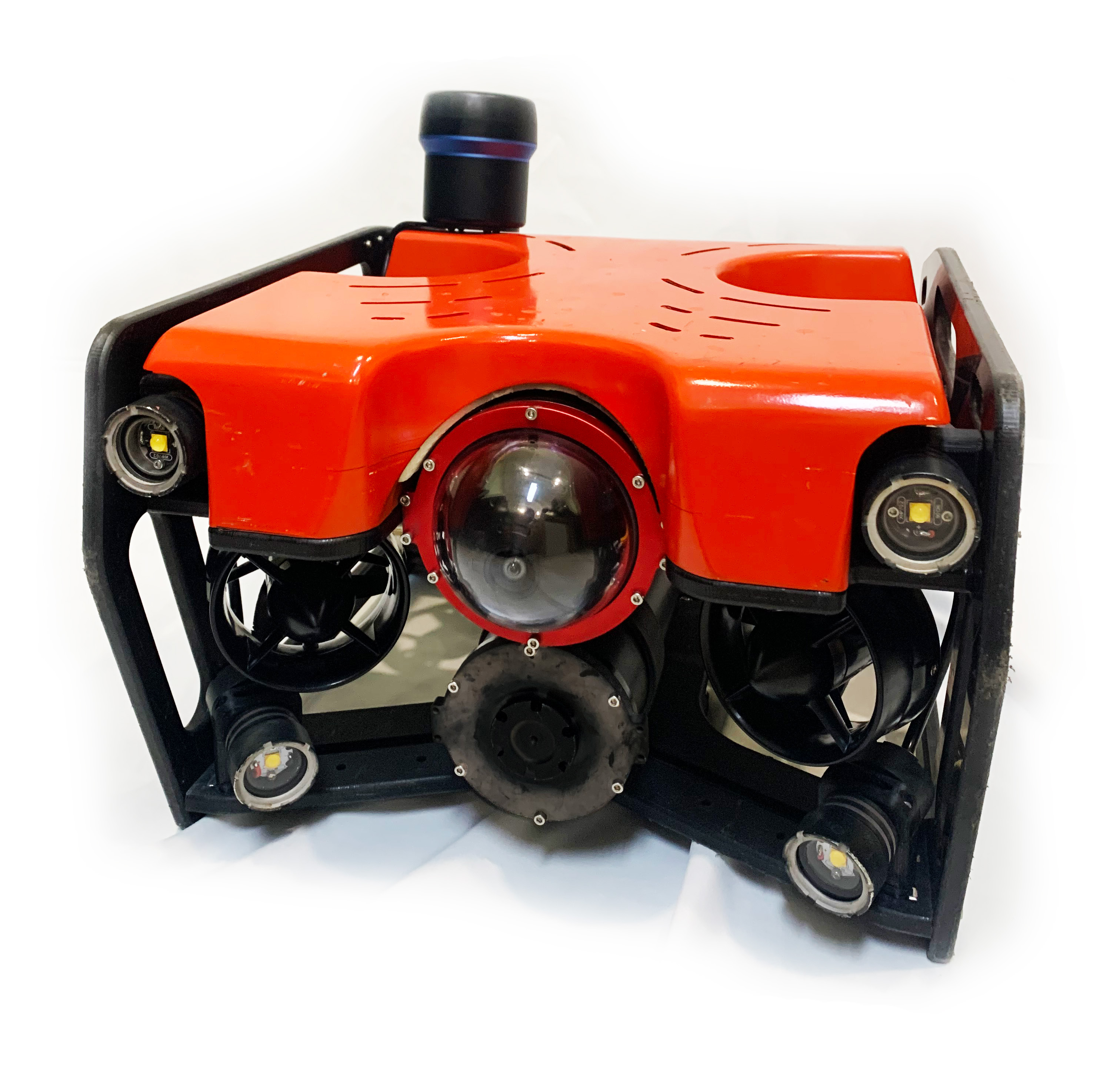 Видеокамера на поворотной платформе Full HD (1080p), 30 кадров/сек, угол обзора: 105°, отклонение по вертикали: ±80° (опционально поставляется дополнительная 4К видеокамера с датчиком глубины и температуры воды)