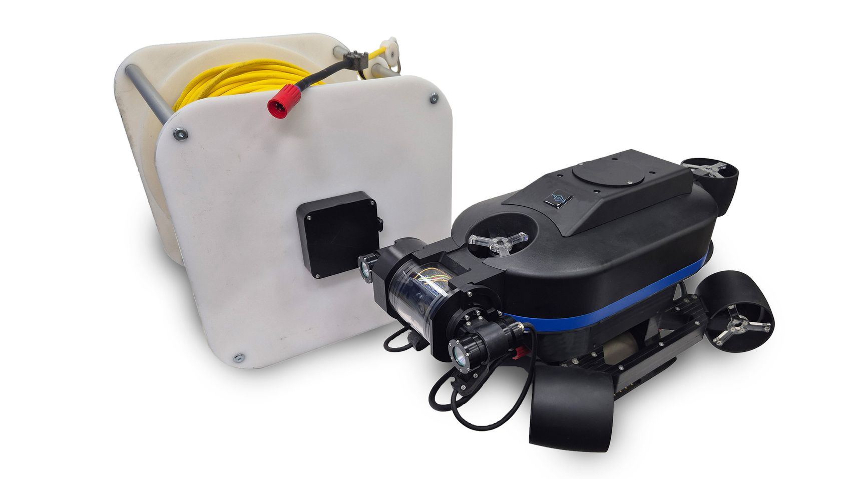 Подводный дрон «Трионикс-6М» предназначен для проведения осмотровых работ на глубинах до 100 м. Имеет в своем составе: дрон, береговую станцию (катушка с кабелем связи), пульт управления, зарядное устройство, инструкцию по эксплуатации.