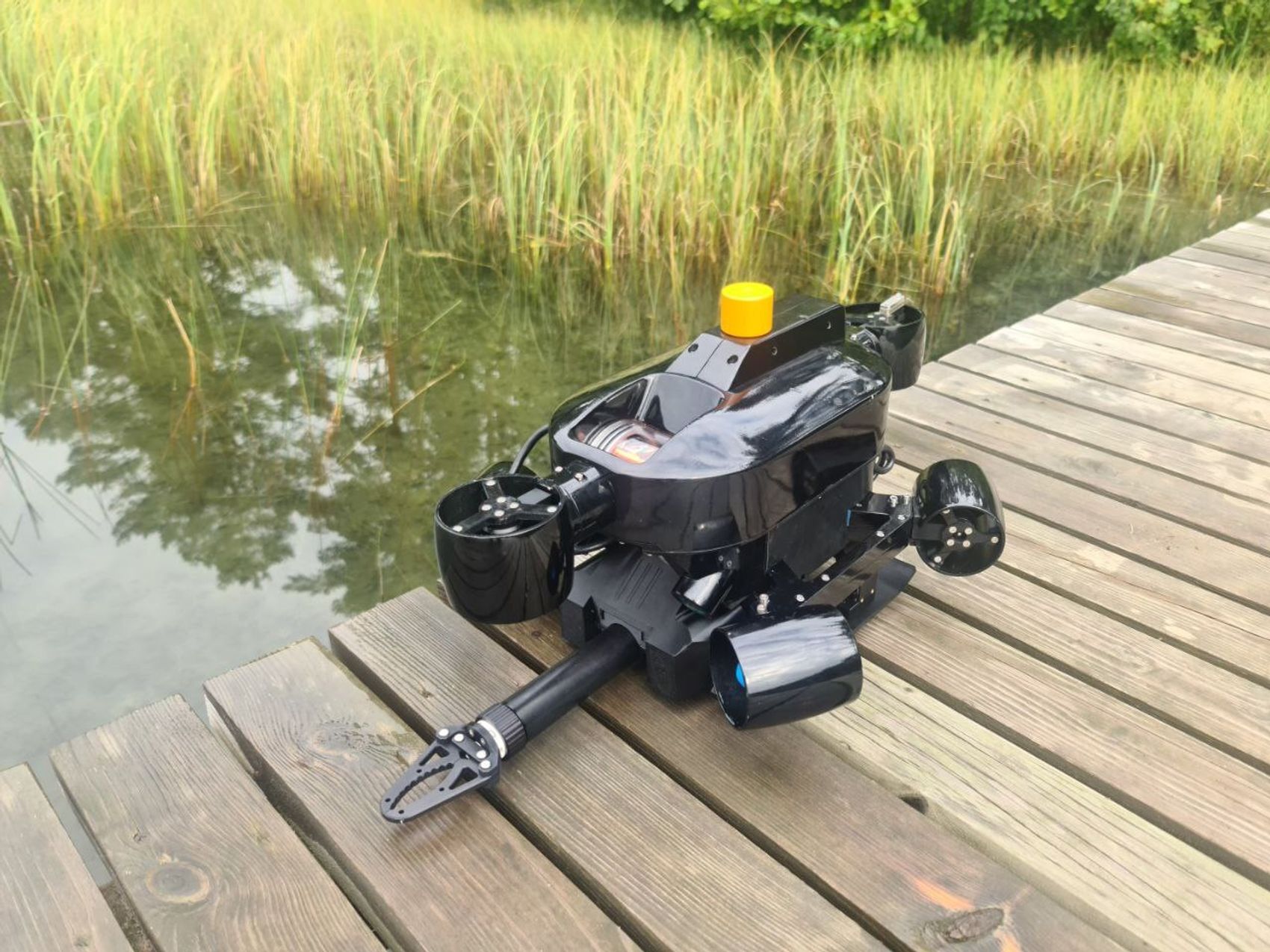 Дрон позволяет установить дополнительную полезную нагрузку, такую как схват, манипулятор, пробоотборник, подвесную видеокамеру, различное гидроакустическое оборудование.