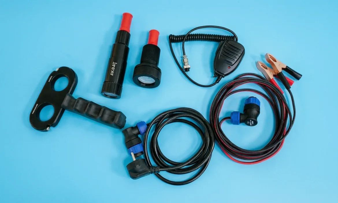 Надводный блок управления с кабелями подключения питания.