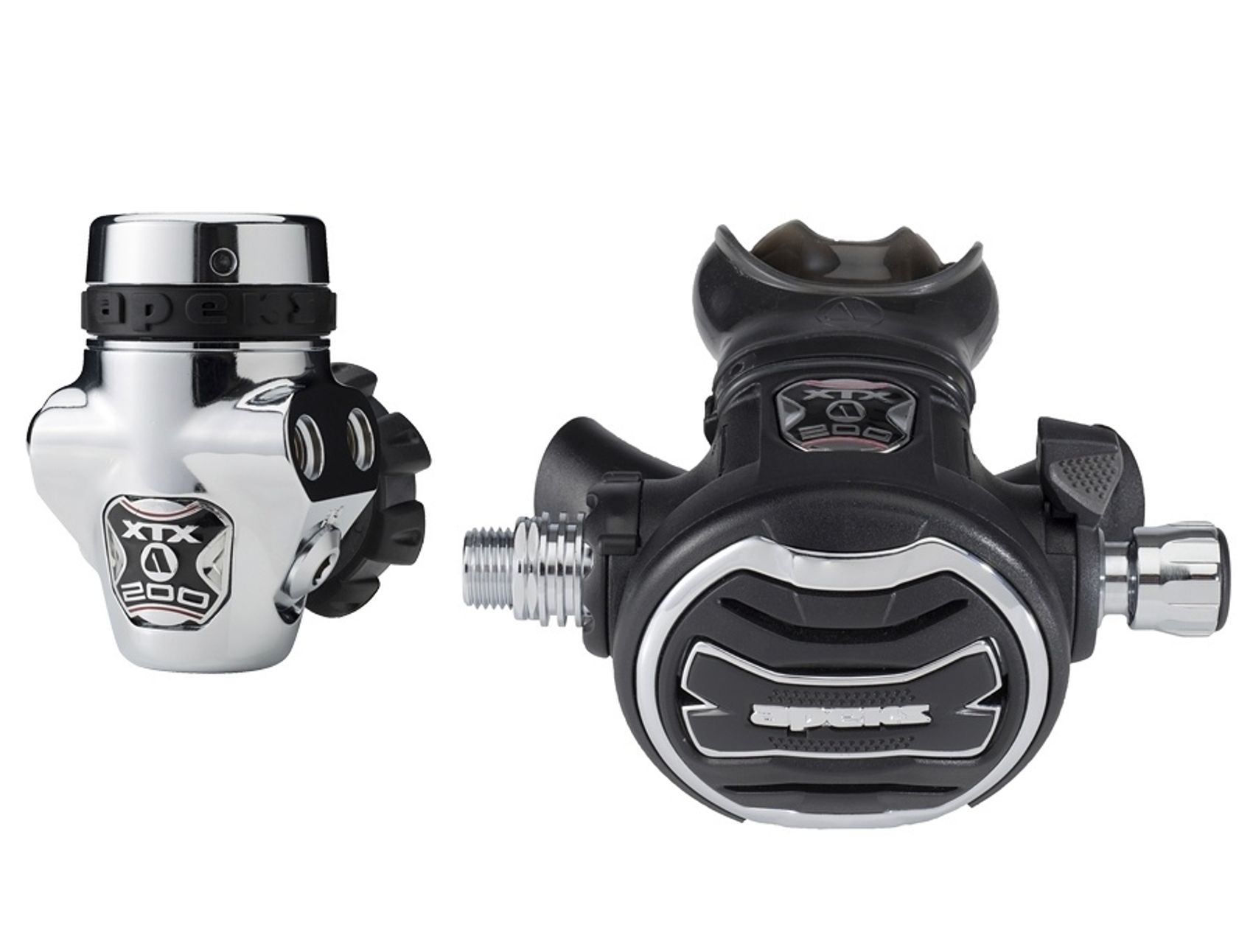 Как и другие модели этой серии, его можно переоборудовать для установки с правой и левой стороны. Эта особенность называется двусторонняя система Вентури (RVS – Reversible Venturi System). Преобразование регулятора под левую руку может быть выполнено быстро и без особых сложностей в любом авторизированном центре обслуживания регуляторов Апекс. Регулятор XTX200 обладает новой особенностью – системой заменяемых дайвером клапанов выдоха отработанного воздуха (DCE – Diver Changeable Exhausts system). Эта система позволяет дайверу заменять малый выпускной Т-образный клапан выхода на большой. Таким образом, в зависимости от потребностей, дайвер может выбрать либо более широкий клапан, позволяющий максимально отводить пузырьки (например, во время подводной съемки), либо более узкий клапан, который дает возможность сделать регулятор более компактным (что идеально подходит для путешествий).