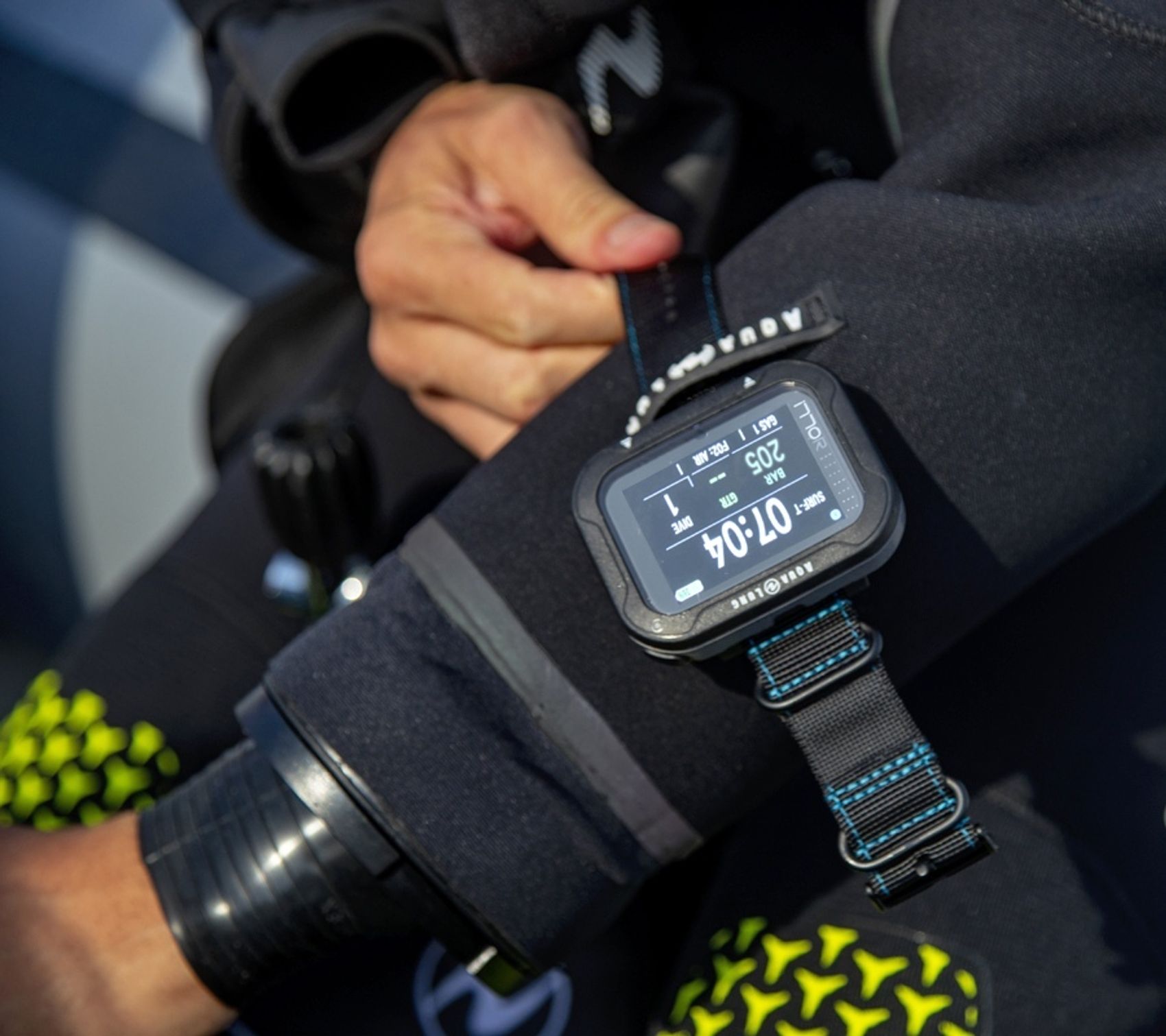 Бесшланговая воздушная интеграция. Запатентованный алгоритм расчетов учитывает оставшееся количество дыхательной смеси в реальном времени:- трансмиттер достаточно «познакомить» с компьютером один раз;- работает с четырьмя трансмиттерами (и четырьмя смесями) одновременно.