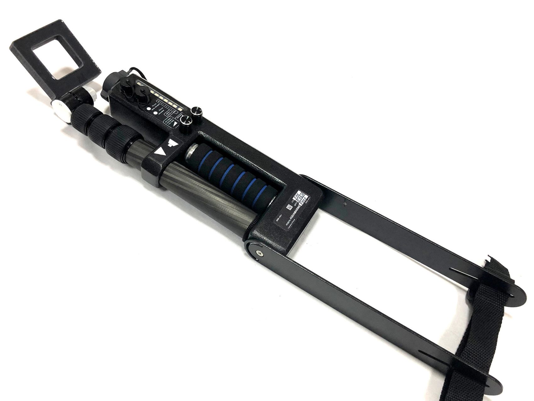 1. Складная конструкция с выдвигающейся телескопической ручкой.